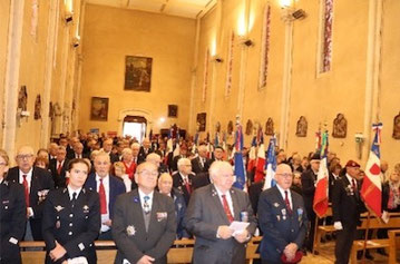 Puis ceux-ci se placent de part et d’autre de l’entrée de l’église pour permettre aux officiels d’entrer et de s’installer. Derrière le père Febvre, curé de la paroisse, les porte-drapeaux font ensuite leur entrée dans l’église et c’est l’accueil des fidèles par le père qui regrette l’absence du père Christian Chanliau, membre de l’UNP 34, qui devait concélébrer cette messe mais qui est malade. Mené de main de maître par Jean-Michel Sanjuan pour l’interprétation de nombreux chants, la messe se termine par la prière du para.